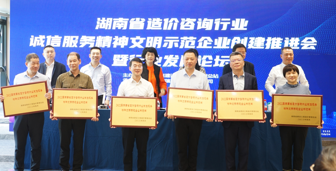 會議最后舉行了2022屆湖南省造價咨詢企業(yè)誠信服務(wù)精神文明示范企業(yè)授牌儀式,表彰在誠信服務(wù)和精神文明建設(shè)方面表現(xiàn)優(yōu)秀的企業(yè),鼓勵全行業(yè)積極推動誠信服務(wù)和精神文明建設(shè)。誠信服務(wù)為行業(yè)發(fā)展注入新動力